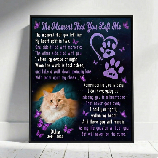 The Moment That You Left Me Poem | Custom Cat Memorial Canvas Print | Cat Memorial Gifts