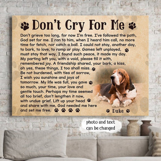 Don't Cry For Me Dog Poem | Custom Dog Memorial Canvas | Dog Memorial Gifts