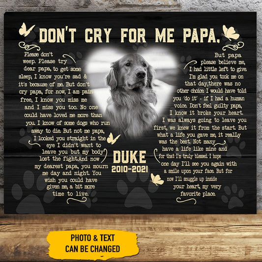 Don't Cry For Me Papa Dog Poem | Custom Dog Memorial Canvas | Dog Memorial Gifts