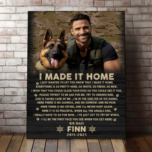 I Made It Home Poem | Custom Dog Memorial Canvas | Dog Memorial Gifts