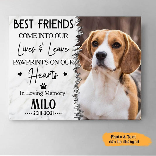 Best Friends Come Into Our Lives And Leave Pawprints On Our Hearts | Custom Dog Memorial Canvas | Dog Memorial Gifts