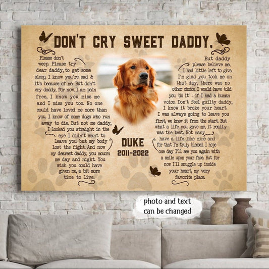 Don't Cry Sweet Daddy Dog Poem | Custom Dog Memorial Canvas | Dog Memorial Gifts