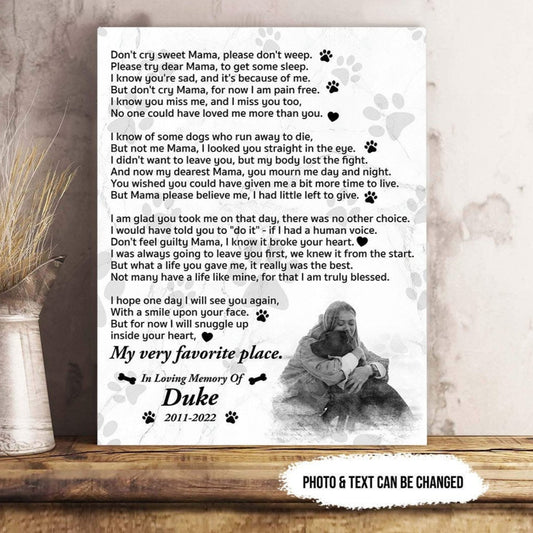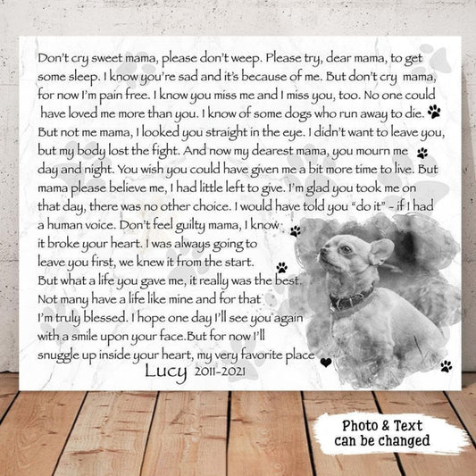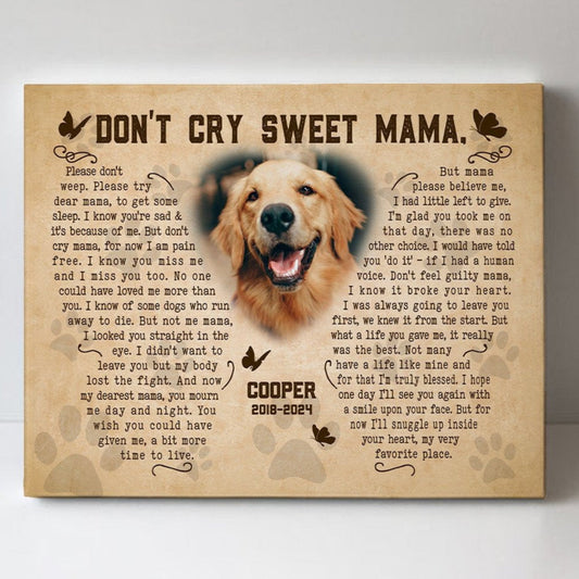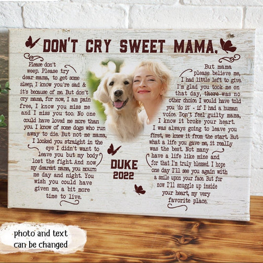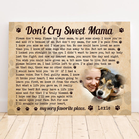 Don't Cry Sweet Mama Dog Poem | Custom Dog Memorial Canvas | Dog Memorial Gifts