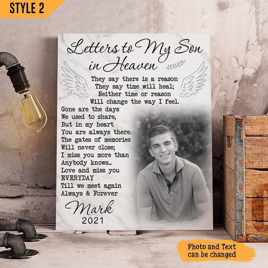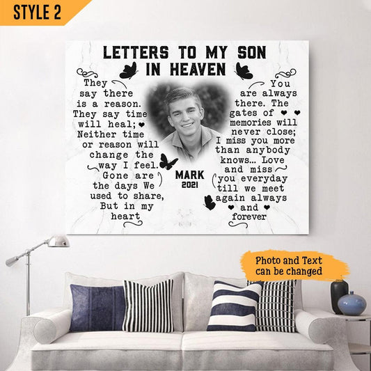 Letters To My Son In Heaven Sympathy Poem For Loss Of Son | Custom Memorial Canvas Print