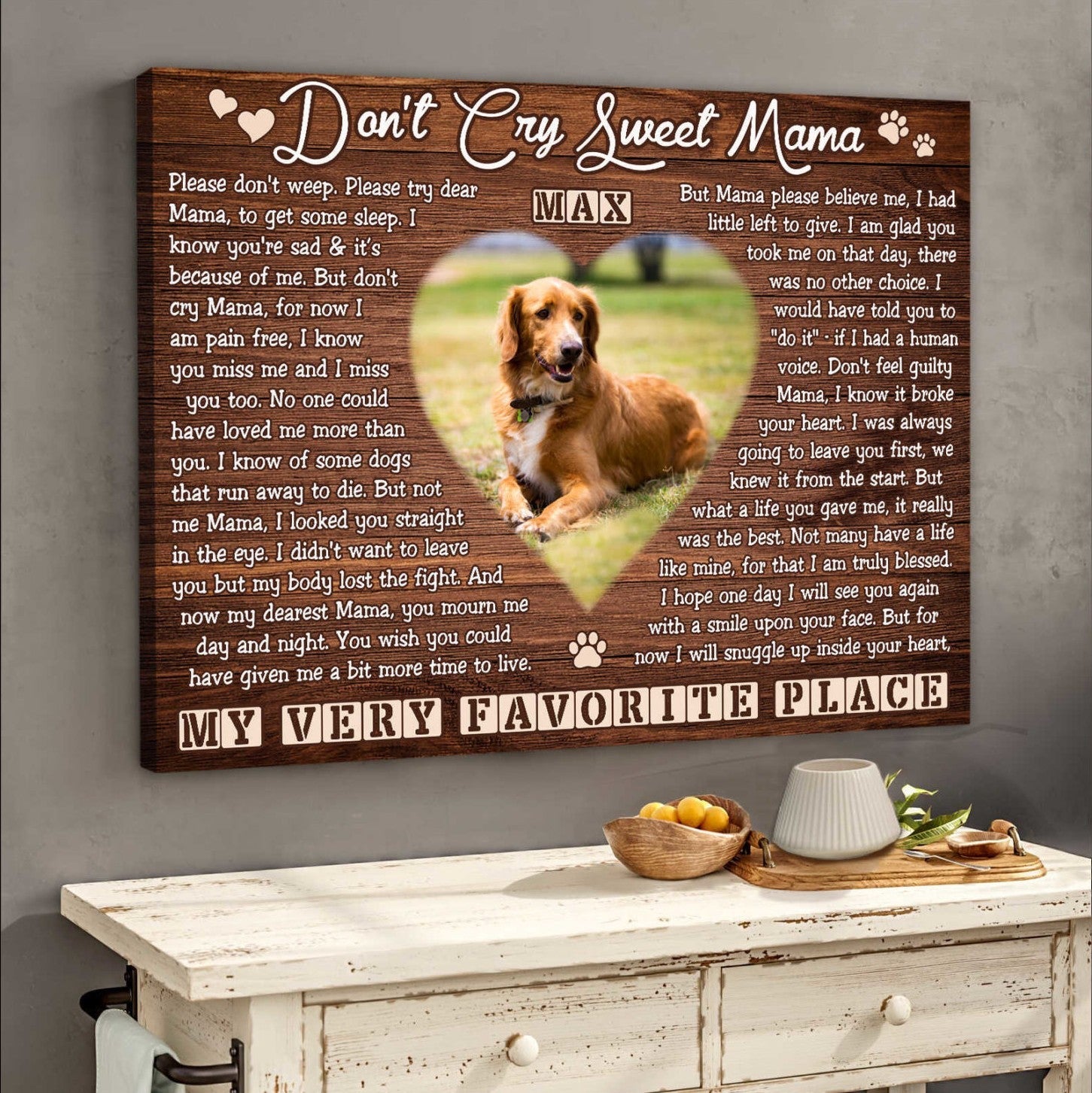 Don’t Cry Sweet Mama Poem | Custom Dog Memorial Canvas | Dog Memorial Gifts